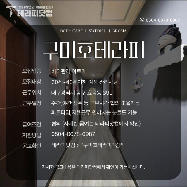 대구 효목동 [구미호테라피] 마사지구인구직 인스타 포스팅| 테라피닷컴 | 마사지소식
