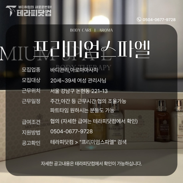 강남 논현동 [프리미엄스파엘] 마사지구인구직 인스타 포스팅| 테라피닷컴 | 마사지소식